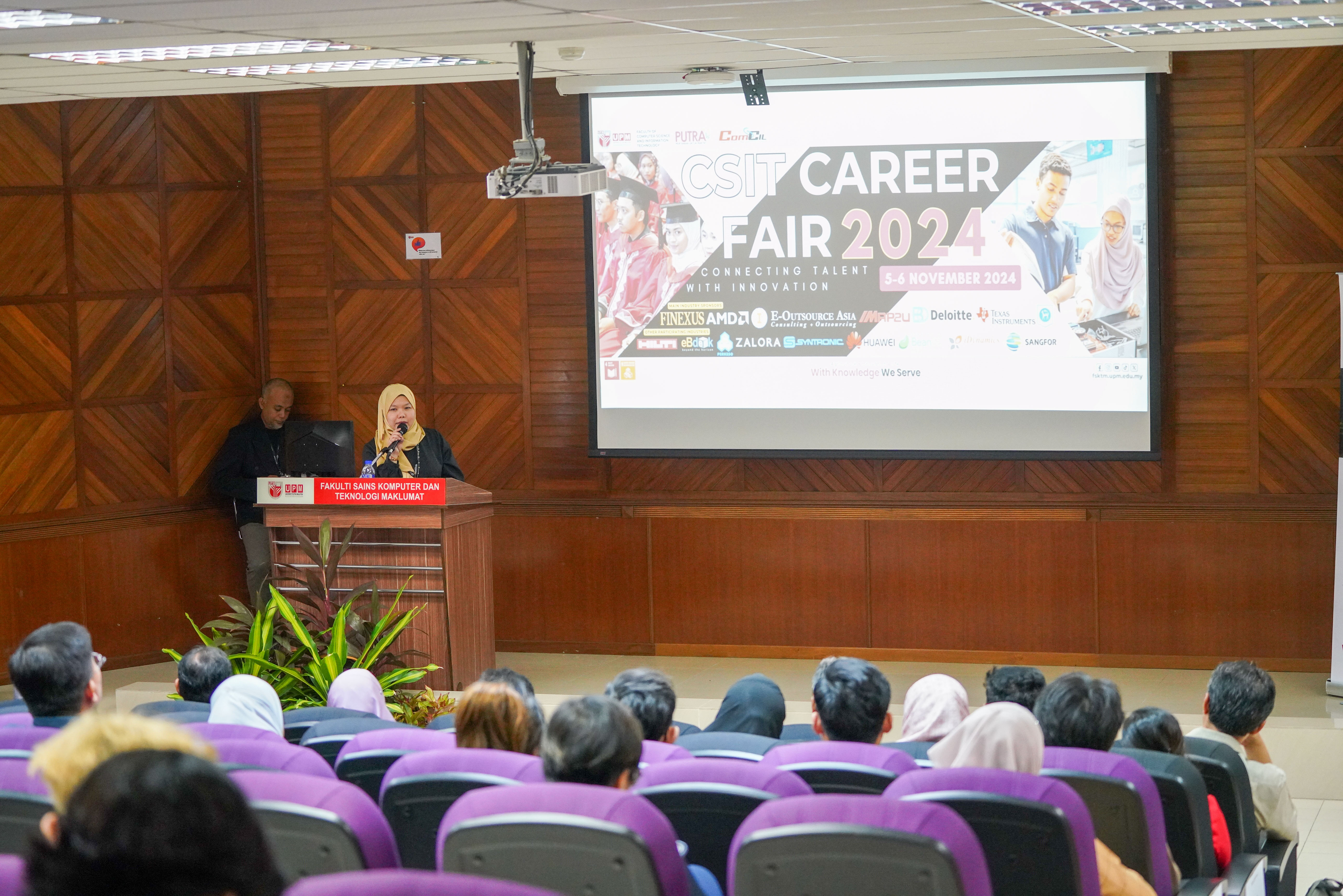 UPM Serdang, 6 November 2024 – The Industry Training and Career Unit of the Faculty of Computer Science and Information Technology organized the CSIT Career Fair 2024, a two-day event that began on 5 November 2024. The program was officially launched by YBhg. Dato' Prof. Dr. Shamala K. Subramaniam, Dean of the Faculty of Computer Science and Information Technology.